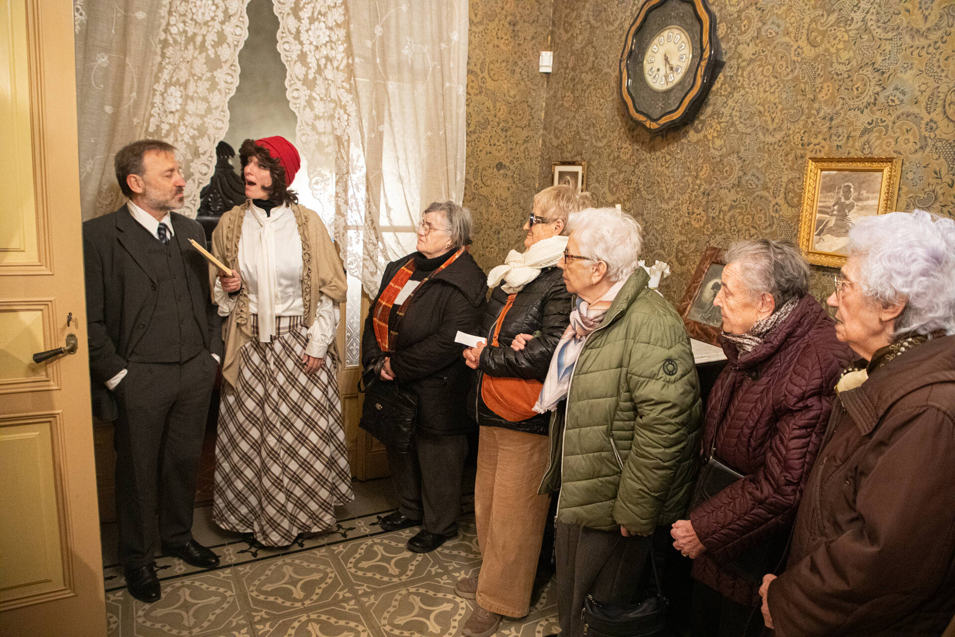 La dramatització a càrrec d'alumnes i exalumnes de l'escola de teatre La Caserna sota la direcció de Pol Bosch i Anna Llort. Guiats per una minyona, els assistents van poder descobrir les estances de la casa a través de petites escenes protagonitzades pels hostes. La voluntat de l'equipament museístic és que es pugui repetir en futures vegades amb altres dones singulars de la història de la ciutat.